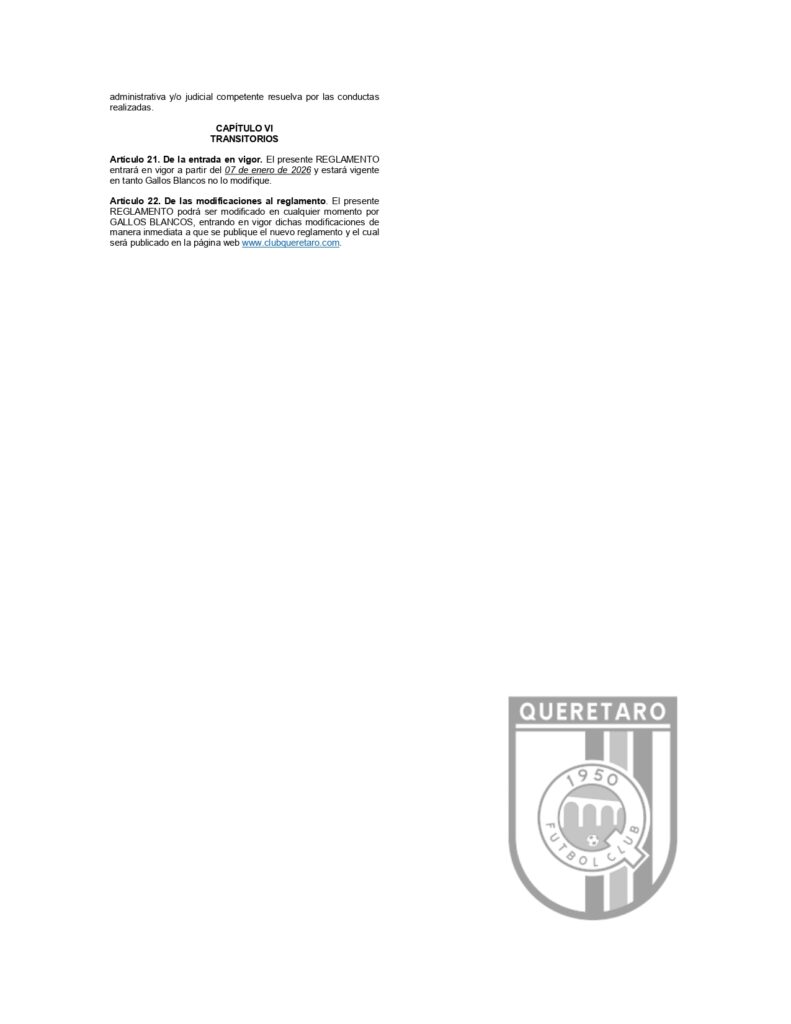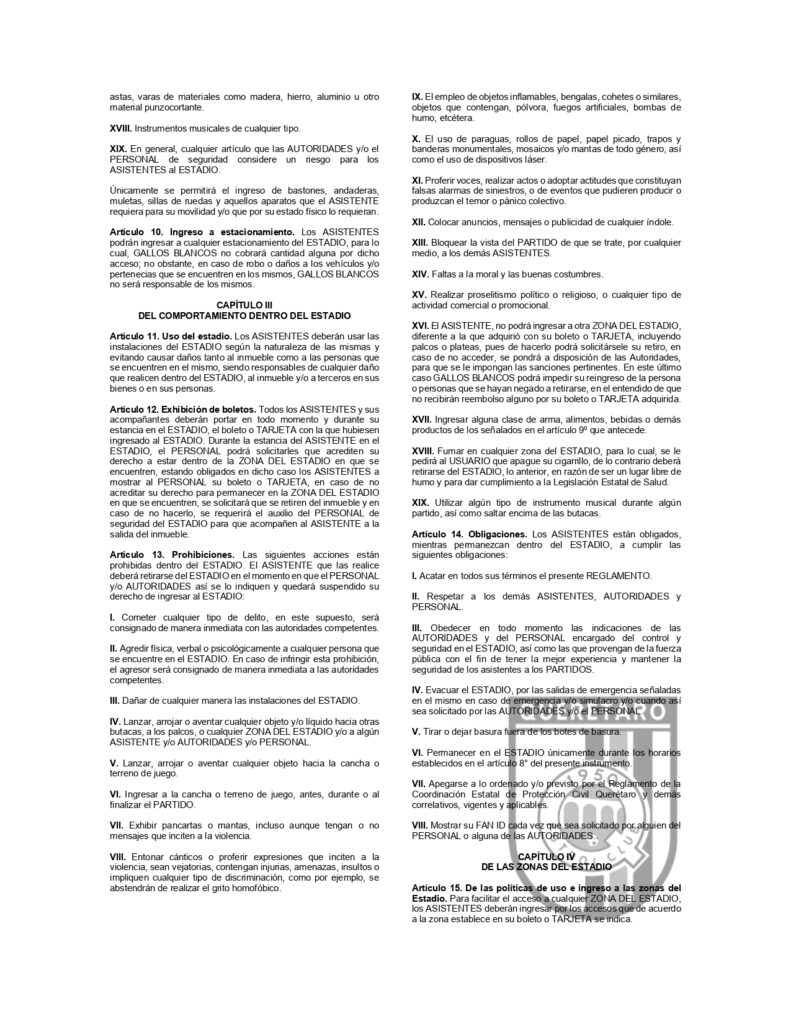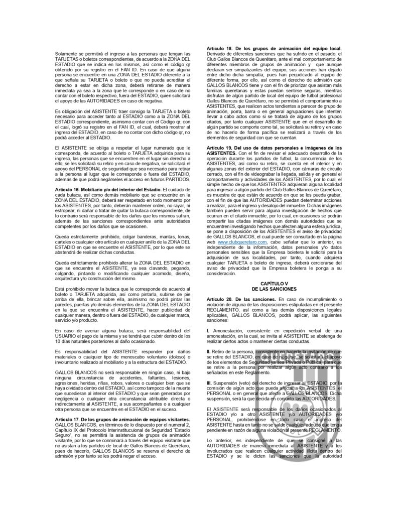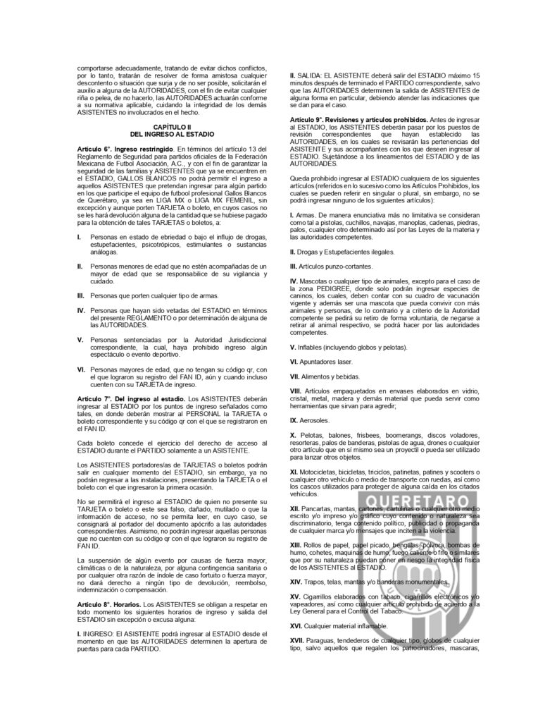 REGLAMENTO QUE REGULA LA CONDUCTA DE ASISTENTES AL ESTADIO CORREGIDORA Post navigation Anterior Querétaro Femenil suma un punto en LeónSiguiente AVISO DE PRIVACIDAD PARA ASISTENTES AL ESTADIO CORREGIDORA